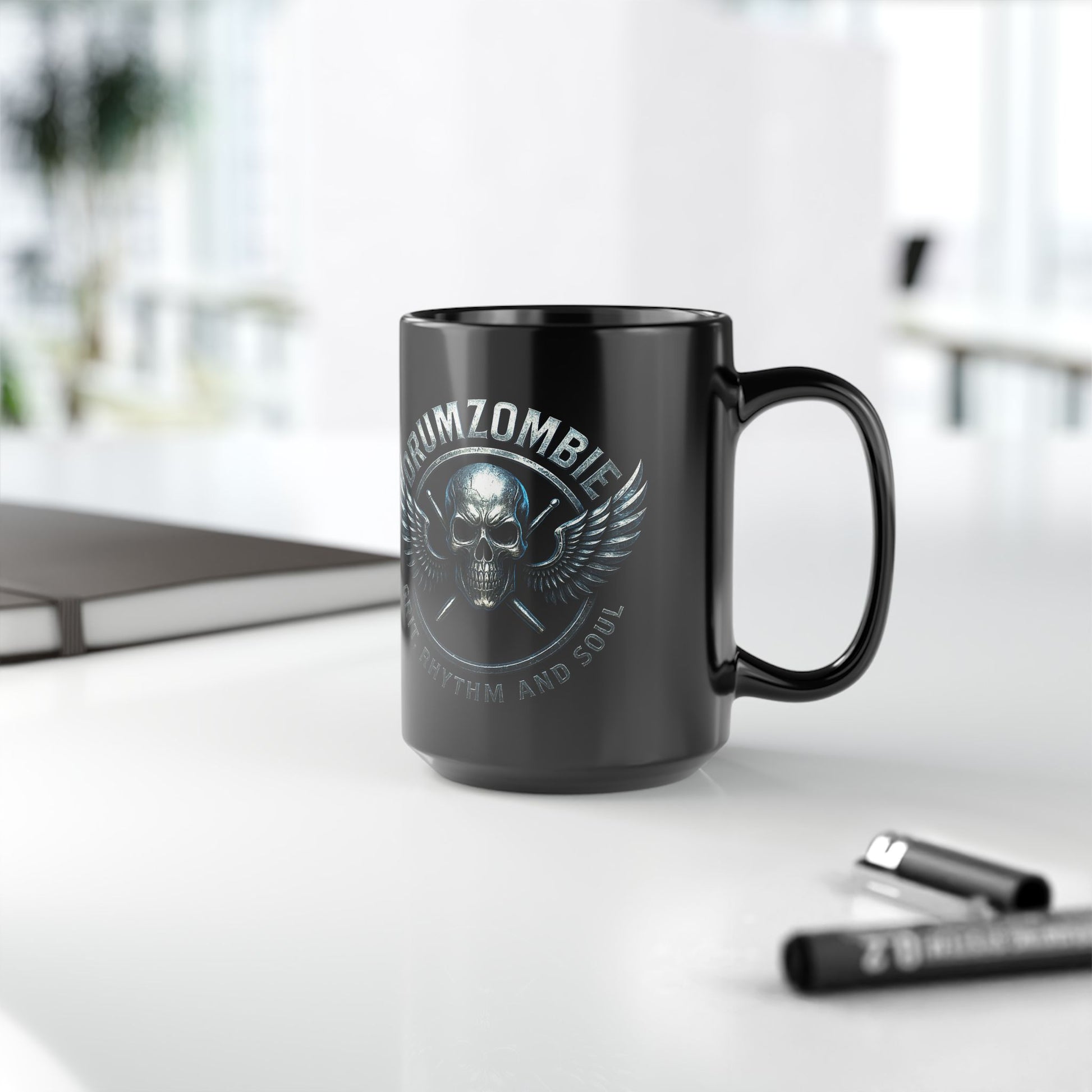 © 2025 DrumZombie. All rights reserved. The "DrumZombie Grit Rhythm and Soul Black Skull Mug (11oz & 15oz)" and associated lore are original copyrighted works protected under U.S. Copyright Law (Title 17, USC).